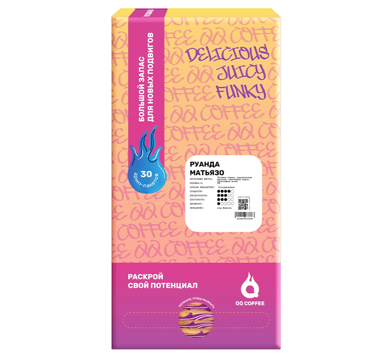 Лот выращен на высокогорных южных землях Руанды, принадлежащих кооперативу Матьязо. Этот район активно развивается, увеличивая свои производственные масштабы. Работают здесь преимущественно женщины и молодежь. Более 300 семей преследуют одну цель - поддержание своей социальной автономии. Их локальное название содружества и девиз звучат как “Dutimbere”, что в переводе означает “давайте идти вперед”. Кофейные деревья этой местности принадлежат разновидности Красный Бурбон. Лот, который находится перед вами, был обработан натуральным способом. Ягоды собирают и сортируют вручную. Затем сушат на африканских кроватях под солнцем в течение 3-4 недель. После этого их помещают в специальные силосы, где они хранятся ещё некоторое время перед прохождением финальной предэкспортной обработки. Наши эксперименты в области обжарки этого лота привели нас к чашке с выраженным оттенком тропических фруктов, четко читаемым тоном темной сливы, яблочного пирога, также можно ощутить и легкие цветочные ноты.