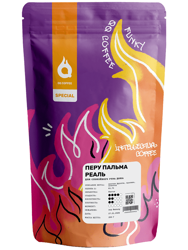 Данный лот выращивается на высоте 1500–1600 м в долине Конвенсьон, регионе Куско. Урожай собирается примерно с 70 небольших семейных ферм, объединённых в инициативу по развитию устойчивого производства и контролю качества на всех этапах. Расположение между Андами и Амазонской низменностью создаёт уникальный климат с мягкими перепадами температур, хорошим дренажем и насыщенными вулканическими почвами, что способствует формированию чистого и сбалансированного вкуса. Ягоды собирают с деревьев разновидности Типика — одной из классических для Перу. После сбора они проходят мытый процесс обработки: ферментируются в воде 20–32 часа, промываются от мусильяжа и сушатся на африканских кроватях в течение 15–25 дней до достижения оптимальной влажности. Такой метод позволяет сохранить чистоту и сладость чашки, подчеркнув естественную мягкость перуанского терруара. Пальма Реаль — понятный и универсальный кофе на каждый день. Он отличается питким телом и сбалансированным вкусом без яркой кислотности или экзотических дескрипторов. В чашке — шоколадная сладость, лёгкая кислотность жёлтых сухофруктов и долгое, мягкое послевкусие. Отличный выбор для основной кофемолки и стабильного, понятного вкуса в эспрессо или фильтре.